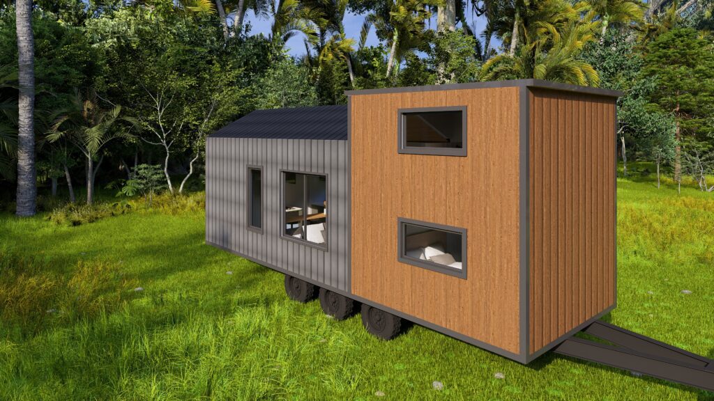 A Tiny Home is a moveable dwelling constructed on a trailer and suitable for transporting. It is suitable for residential use with self-contained amenities – such as a kitchen, bathroom, laundry, and bedroom(s). Tiny Homes also typically come with options to be either connected to the grid or off-the-grid living.